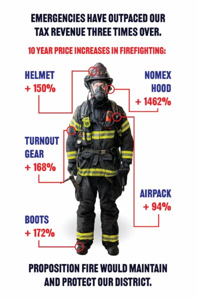 Prop. FIRE includes a 12-cent operating tax rate increase, which would cost the owner of a home valued at $300,000 less than $6 per month (or about $2 per month for every $100,000 of home value).